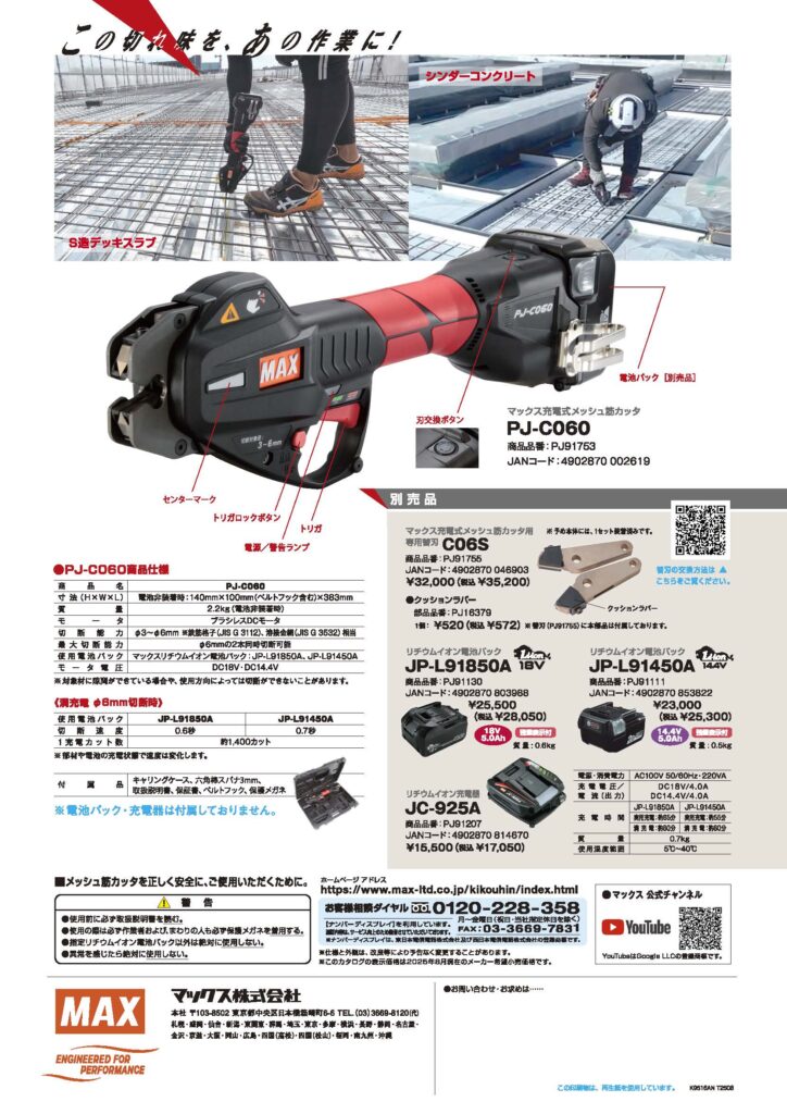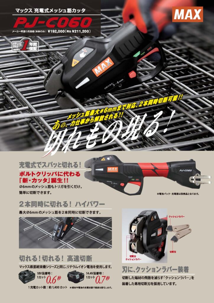 この度、弊社はマックス株式会社様の「充電式メッシュ筋カッタ PJ-C060」の取り扱いを開始いたしました。