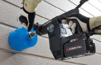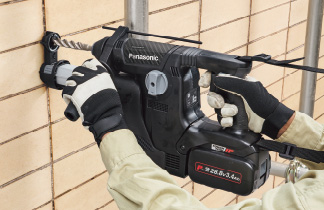 ブラシレスモーターを搭載したことで、当社「EZ7880」と比較しパワーが約1.5倍、スピードが約1.2倍アップ。ハンマーモード「高速」時は、最大でφ28mmのコンクリート穴あけが可能。