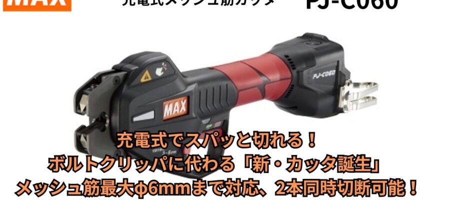 この度、弊社はマックス株式会社様の「充電式メッシュ筋カッタ PJ-C060」の取り扱いを開始いたしました。 建設現場でのメッシュ筋切断作業は、時間と労力がかかるものでした。本製品は、その常識を覆すパワフルな充電式カッタで